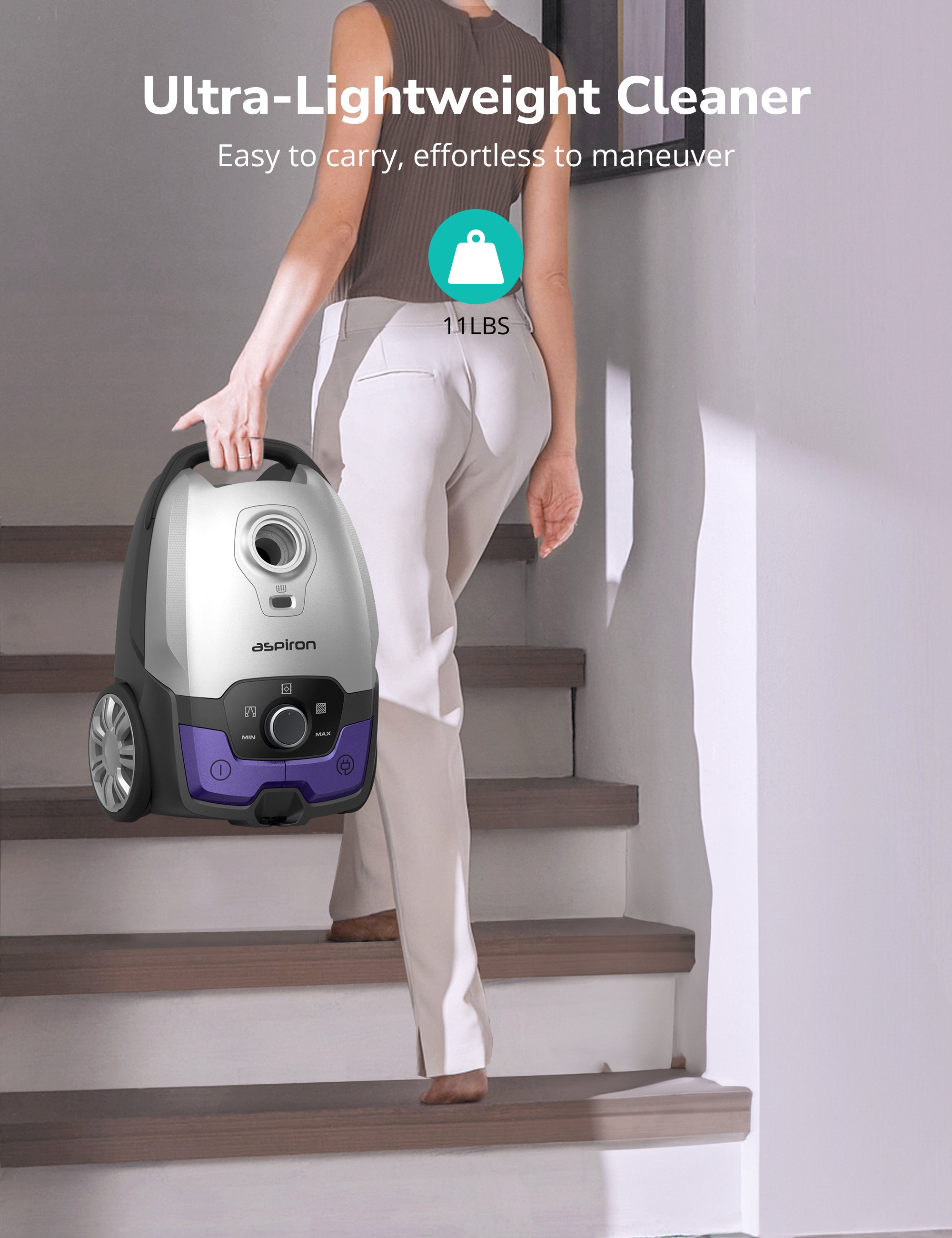 Aspiron Bagless Canister Vacuum Cleaner AS-CA040 5L Dust Bag, Easy to Push,